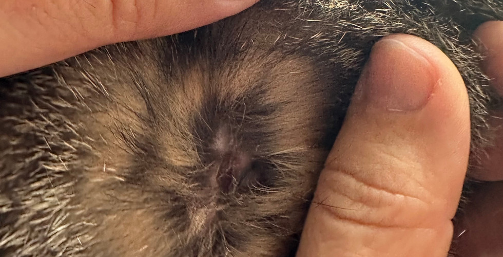 I managed to Reiki him twice over the weekend. When we checked on him on Monday morning, prior to taking him to the vet, we were all flabbergasted as we really couldn't find the location of the injury, and had to search hard to locate it. My youngest daughter had another awakening moment of her short life; the look on her face was priceless - I think all doubt has now left her as to the efficacy of Reiki!